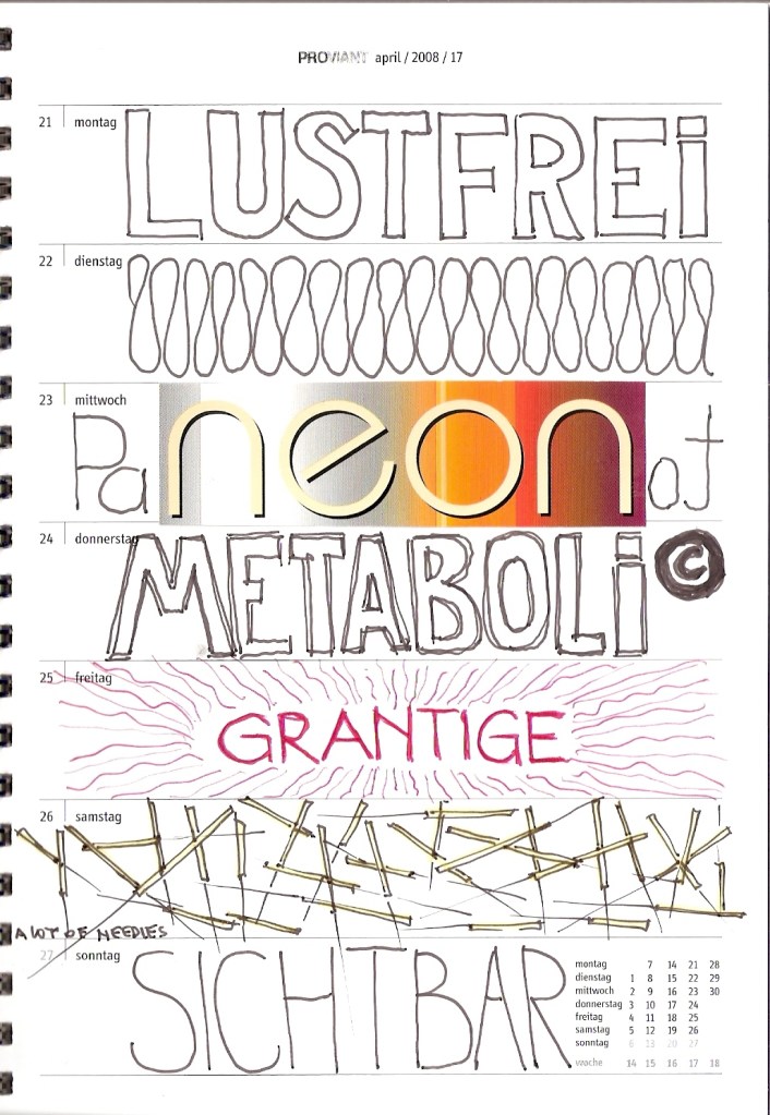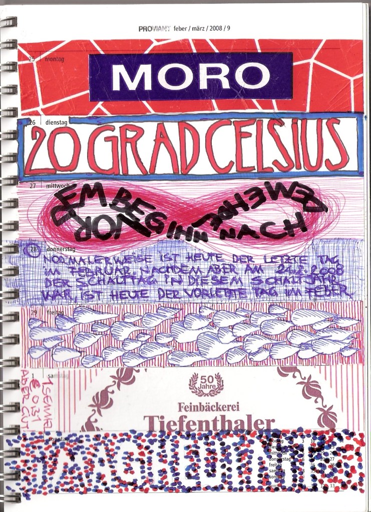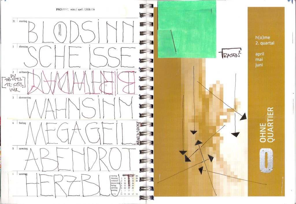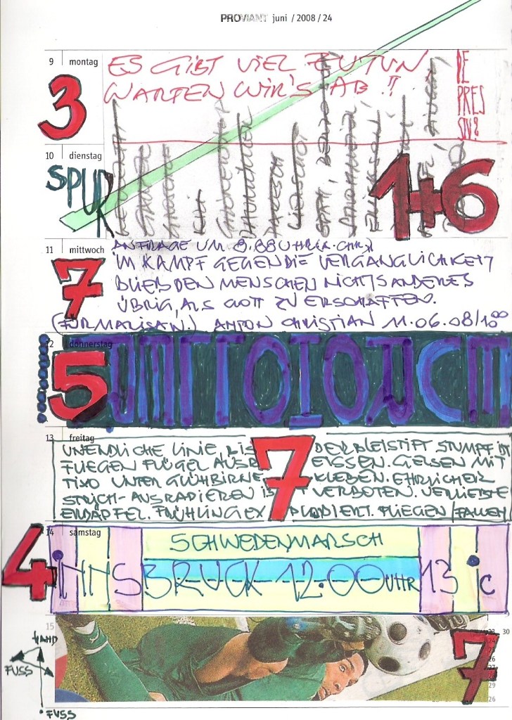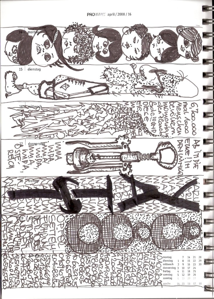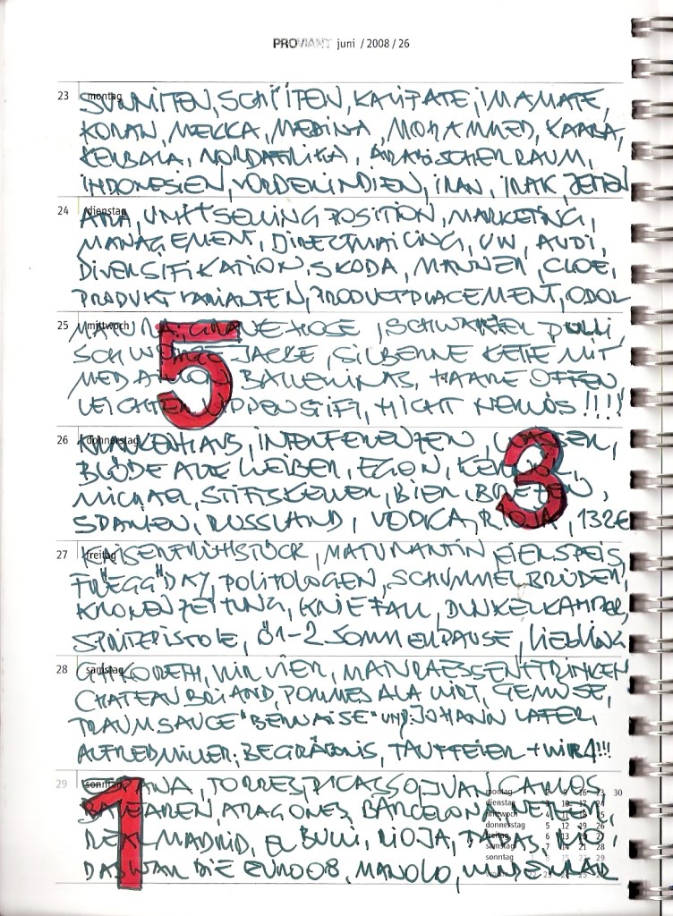 Motivation genug, diesen 30 cm2 kleinen Streifen im wöchentlichen Kalenderblatt zu ´beackern´. Und das ist verdammt hart, wie ich feststellen musste. Tagtäglich auf´s Neue, ein ganzes vor mir liegendes Jahr lang.