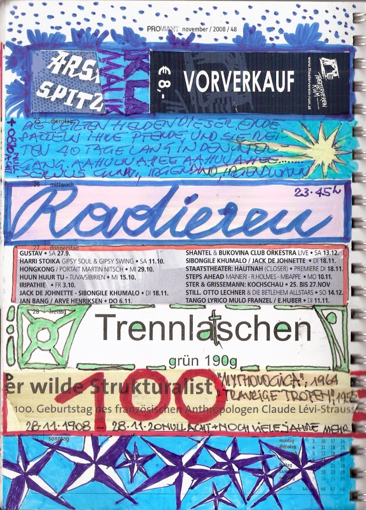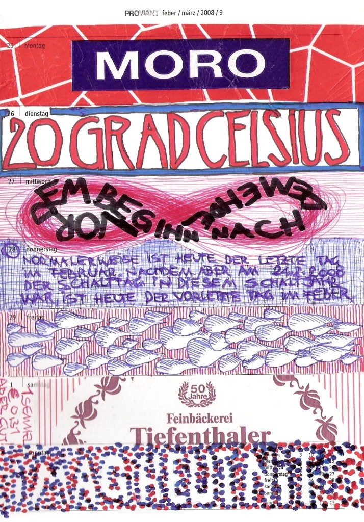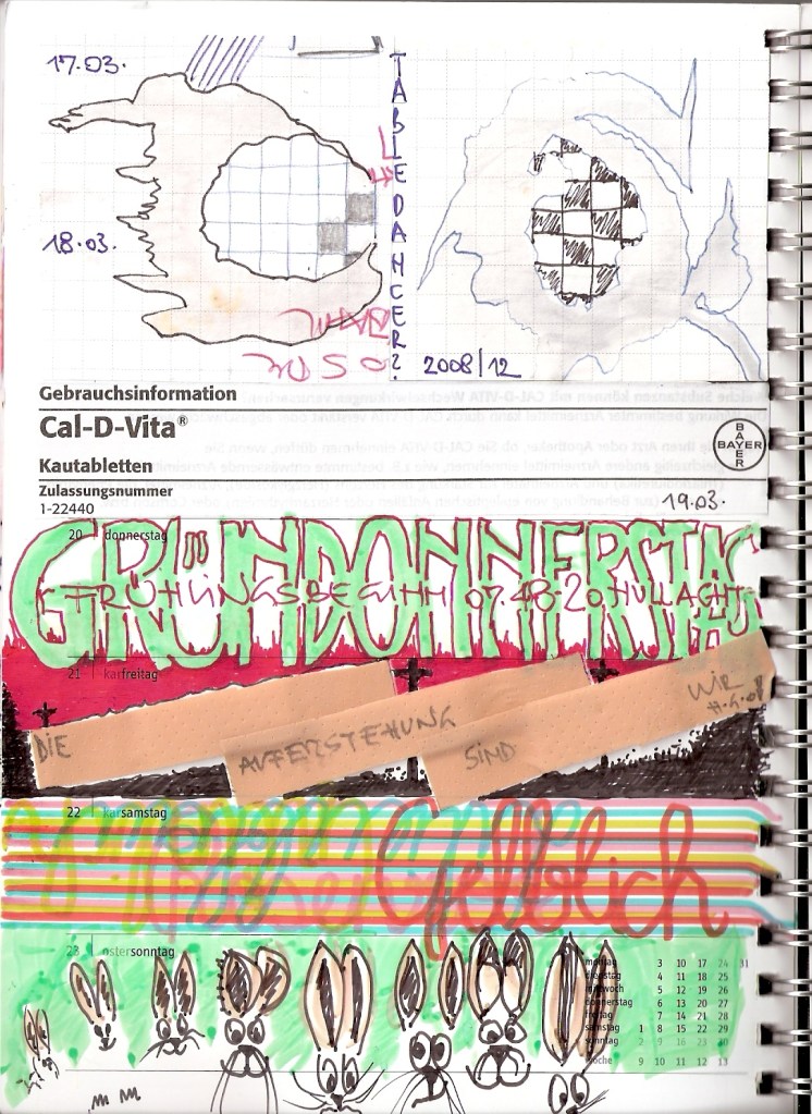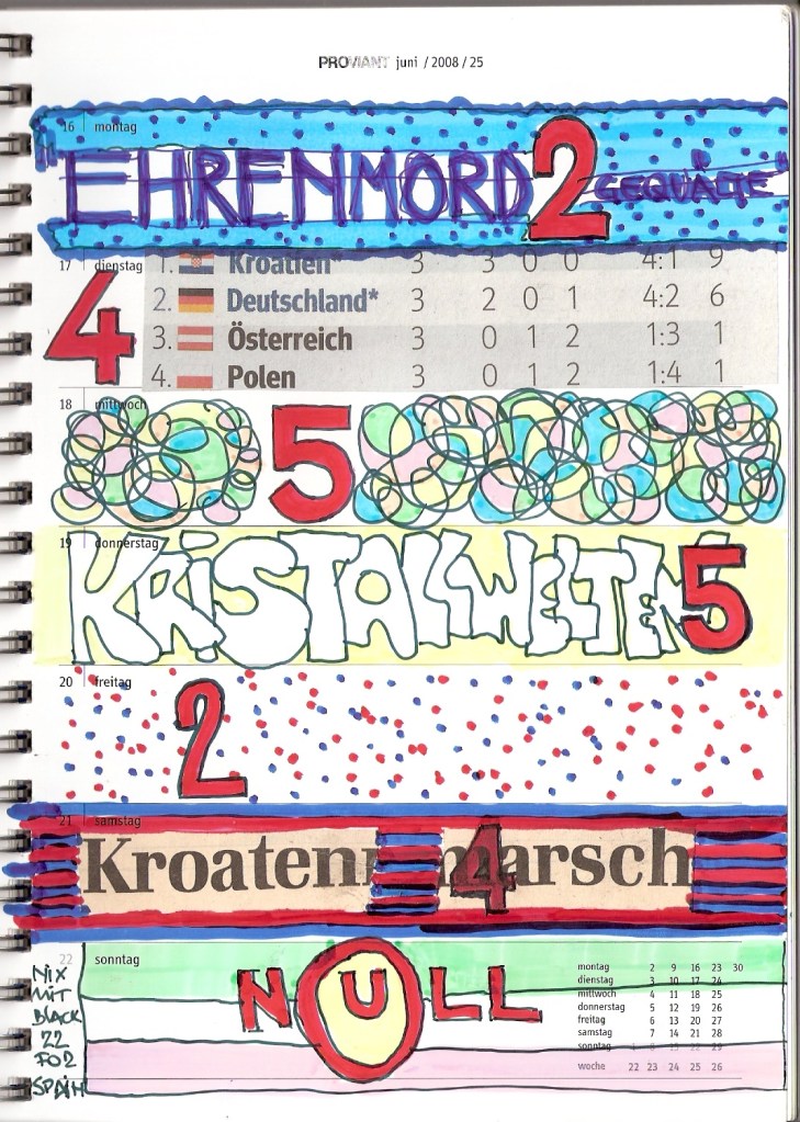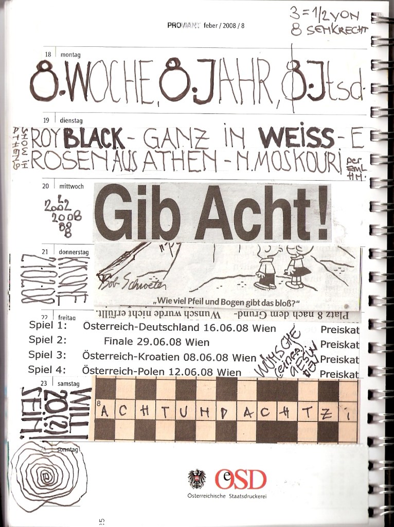 Motivation genug, diesen 30 cm2 kleinen Streifen im wöchentlichen Kalenderblatt zu ´beackern´. Und das ist verdammt hart, wie ich feststellen musste. Tagtäglich auf´s Neue, ein ganzes vor mir liegendes Jahr lang.